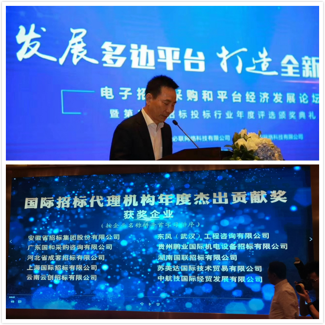 祝賀我公司榮獲國(guó)際招標(biāo)代理機(jī)構(gòu)年度杰出貢獻(xiàn)獎(jiǎng)