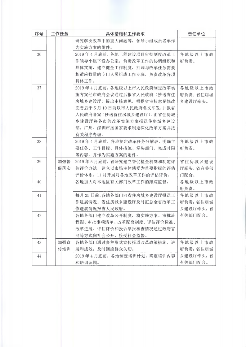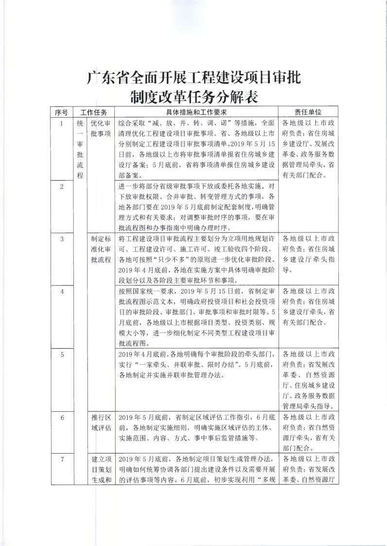 廣東省住房和城鄉建設廳關于印發《廣東省全面開展工程建設項目審批制度改革任務分解表》的通知