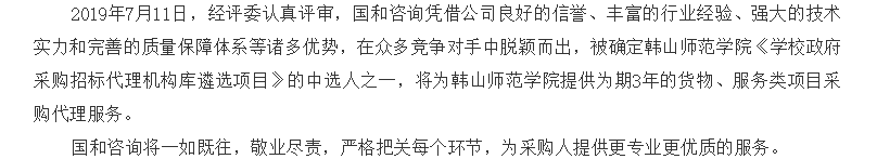 我公司成功中選“韓山師范學院學校政府采購招標代理機構庫遴選項目”