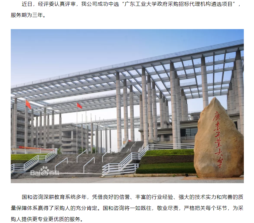 我公司成功中選“廣東工業大學政府采購招標代理機構遴選項目”