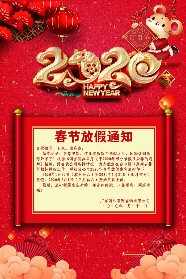 關于2020年春節放假安排的通知
